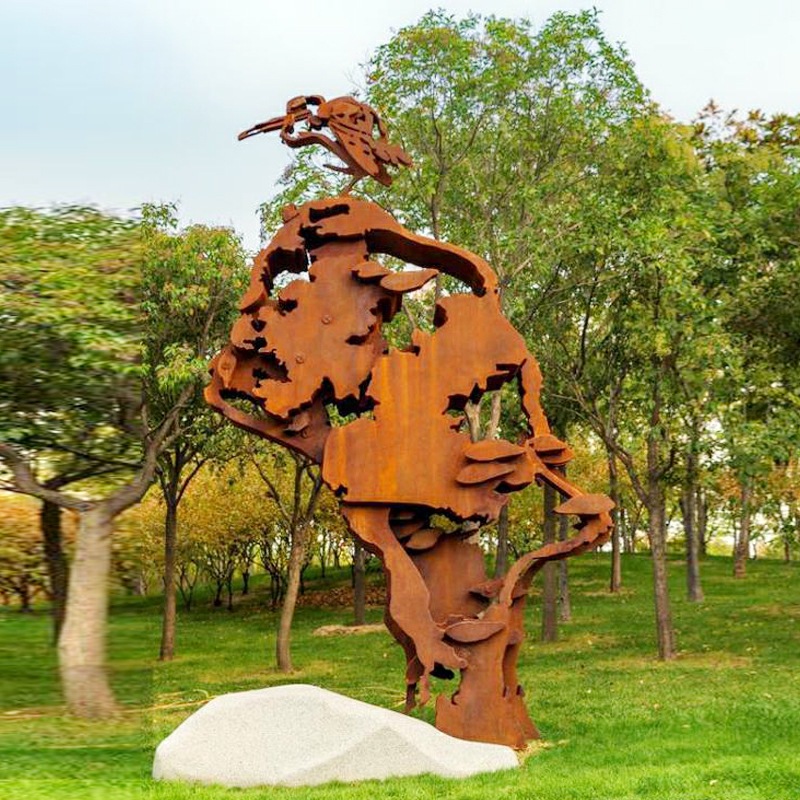 此外,耐候钢作为一种环保、可持续的材质,也符合了当下社会对于绿色、低碳生活的追求。它的锈蚀过程是一种自然演变,无需额外的人工干预或维护,这在一定程度上降低了城市雕塑的运营成本,也体现了人与自然和谐共生的设计理念。